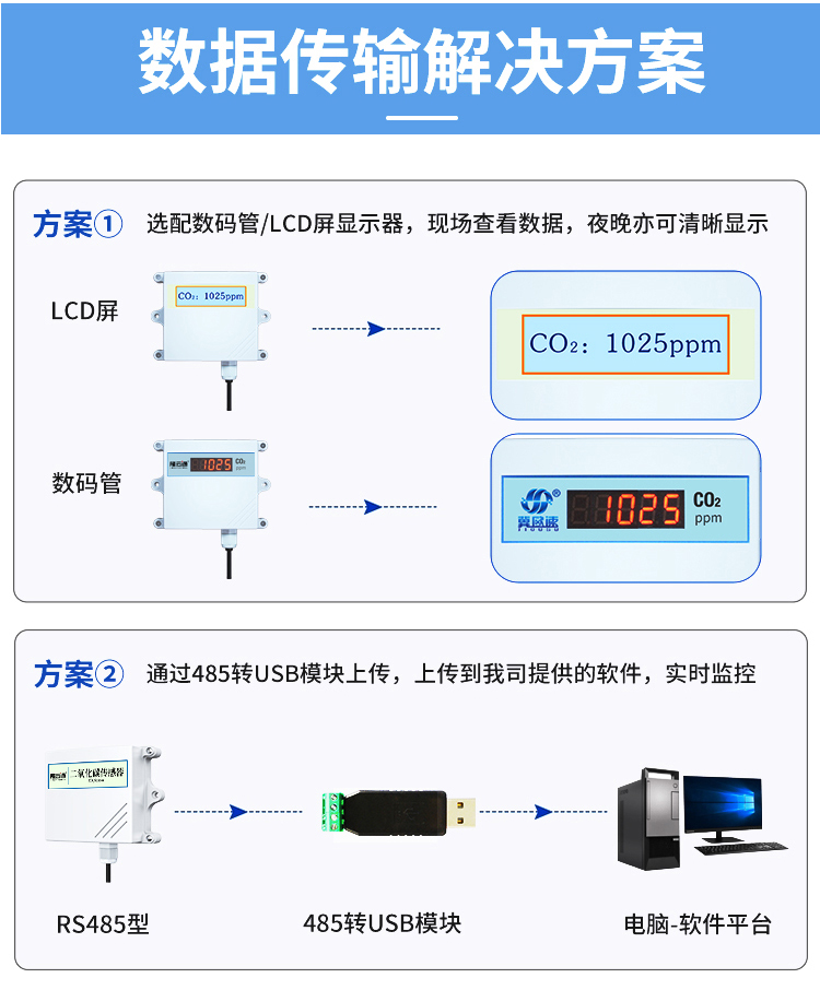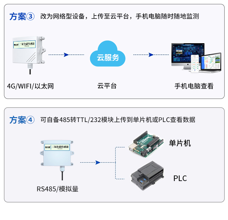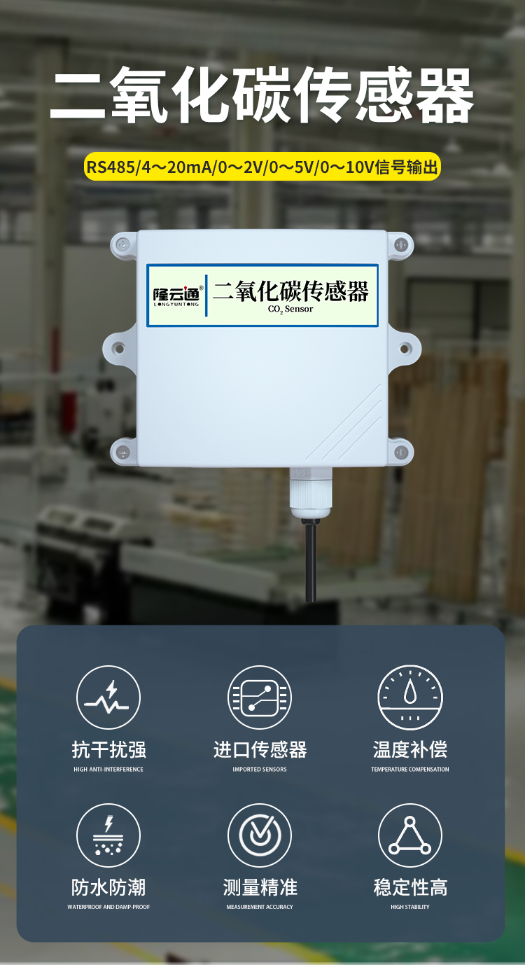 二氧化碳传感器是用于检测二氧化碳浓度的机器。二氧化碳是绿色植物进行光合作用的原料之一,作物干重的95%来自光合作用。因此,使用二氧化碳传感器控制浓度也就成为影响作物产量的重要因素。